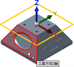 - [工具方向 Z 軸]ボタンがアクティブであることを確認し、次の図に示すように、傾斜面を選択します。
