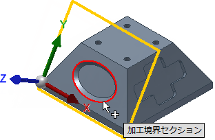 - 加工境界について、ダイアログ ボックス上部にある[加工境界]ドロップダウン メニューから[選択]を選択します。