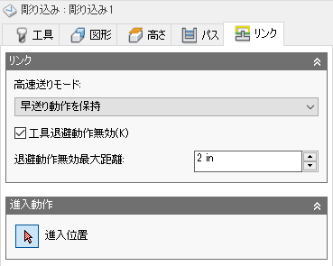 無効: [送り高さ]を無効にすると、工具は進入まで早送りされます。