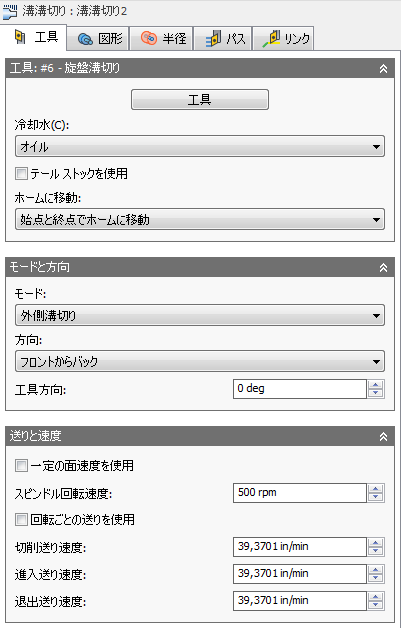 溝切り加工法は、溝切り工具を使用してパーツの粗取りと仕上げを行う場合に使用します。