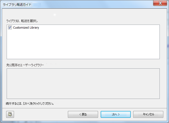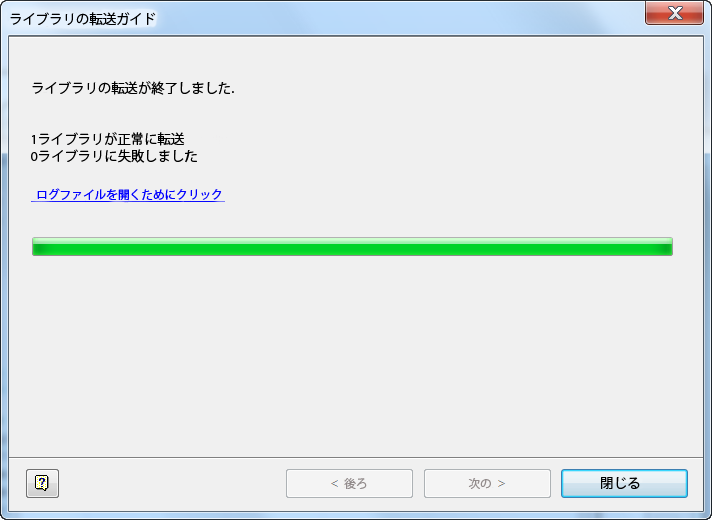 - [次へ]をクリックしてライブラリを転送します。図 5 を参照してください。[閉じる]をクリックして終了します。
