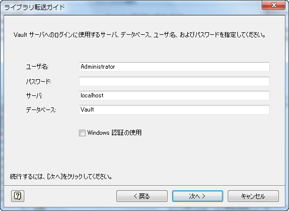 - [次へ]ボタンをクリックして Vault サーバにログオンします。図 3 を参照してください。
