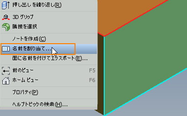 - パーツ ファイルで、他のパーツに拘束されている、または拘束されるジオメトリを右クリックし、[名前を割り当て]を選択します。