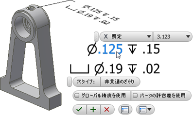 モデルの寸法に公差情報が含まれている場合は、プロモートされた寸法にも含まれます。