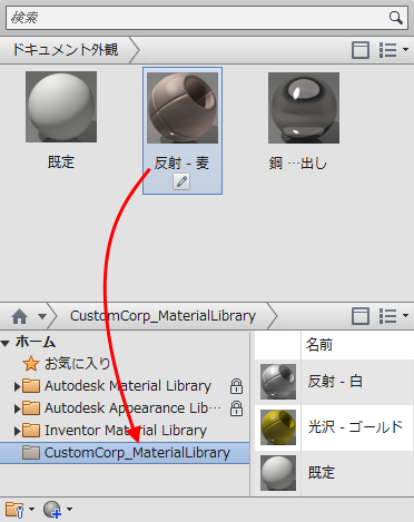 カスタム ライブラリを作成し、独自のカスタム外観が含まれているすべてのドキュメントから保存対象の外観をライブラリに入れる必要があります。