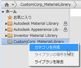 左下ペインで新しいライブラリを右クリックし、[カテゴリを作成]を選択します。
