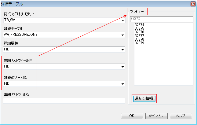 * DetailTable: このプレビュー ペインは詳細リストを表示します。更新をクリックして、定義で必要な結果が得られるかどうかを確認します。