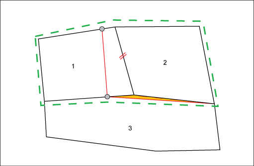 多くの場合、エリア トポロジは地籍アプリケーションで区画を表します区画は境界線により定義され、区画全体に固有のデータを含んでいる必要があります。このモデルの境界線は、ポリゴンへの一連のラインおよび区画に対応する必要があります。エリア トポロジは、一連のラインからエリア(ポリゴン)を作成します。