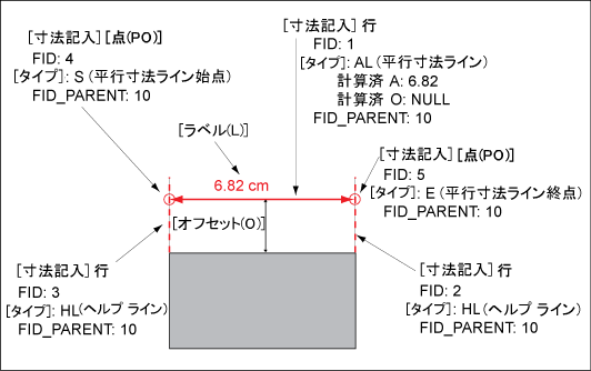 平行寸法記入は、下の表に示すようにポイントとラインで構成されています。