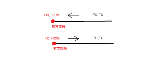 特定のフィーチャ(FID_FROM)および接続先フィーチャ(FID_TO)間の流れ方向を指定します。