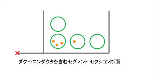 マップ内に配置すると、断面には現在のセグメントのダクトおよび電線が表示されます。