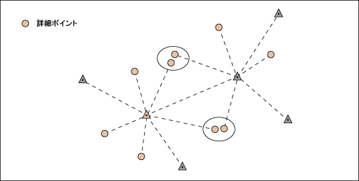 [同一ポイントの検索]機能によって、[フィールド コード一覧]に明記されている識別子、フィールド コード、位置によって同一ポイントを検出します。許容範囲を越えるポイントについては、検索結果を手動で解析するよう促します。