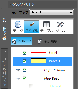 [Parcels]画層をクリックして[スタイル]をクリックします。