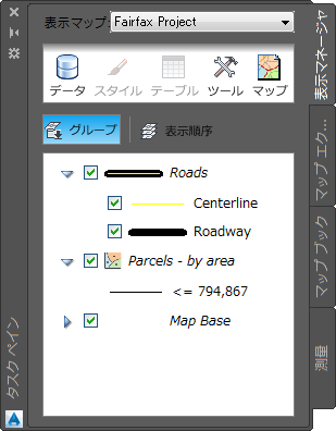 表示マネージャでは表示マップを作成できます。各表示マップには、スタイルが設定された画層のセットが含まれています。1つのマップ ファイルに複数の表示マップを含めることもできますし、各ファイルに同じデータのスタイルを異なるように設定することもできます。