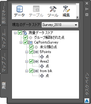 [測量]タブを使用して、測量点データを読み込み、分類します。