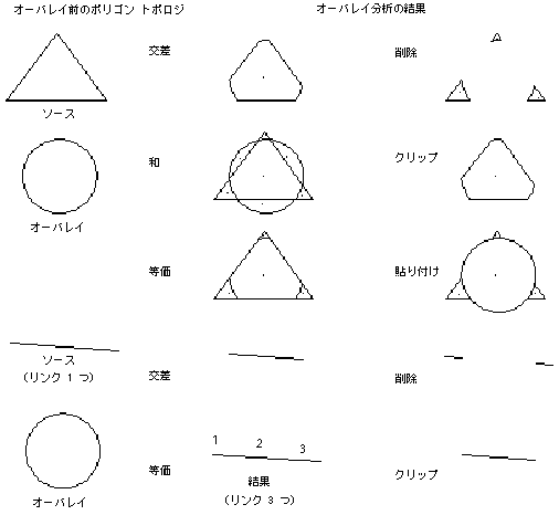 2 つのトポロジをオーバーレイする場合は、選択された 2 つのトポロジが対話する方法を選択します。結果は、どのトポロジがソースで、どれがオーバーレイかによって異なることがあります。
