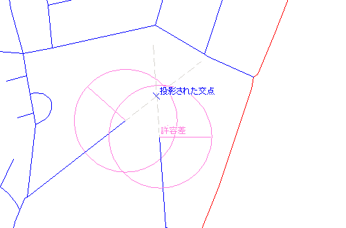 オブジェクトを自然に延長して予測点で交差するようにする 仮想交点