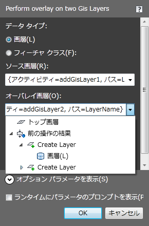 前のアクティビティで作成された画層を使用するには、[前の操作の結果]でリストから画層を選択します。