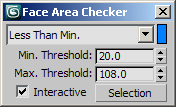 spinner spn_FaceAreaThresholdMin "Min. Threshold:" range:[0,1000000,FaceAreaChecker.FaceAreaThresholdMin] offset:[7,-3] type:#worldUnits spinner spn_FaceAreaThresholdMax "Max. Threshold:" range:[0,1000000,FaceAreaChecker.FaceAreaThresholdMax] offset:[7,-3] type:#worldUnits checkbox chk_InteractiveUpdates "Interactive" checked:FaceAreaChecker.InteractiveUpdates offset:[0,-3] across:2