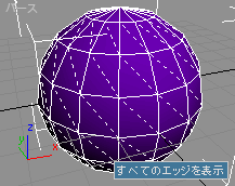 注: 3ds Max は、エッジを面のエッジとして定義します。メッシュ オブジェクトでは、エッジの数は面の数の 3 倍です。1 つの面には 3 つの頂点があり、面のエッジはこれらの頂点を接続します。エッジ