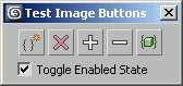 これらのイメージは、隣り合わせに格納された複数のイメージを含む単一のビットマップ ファイルまたは MAXScript ビットマップ値から取得されます。ボタンに使用するイメージを 1 つ以上含むこのビットマップは、 イメージリスト と呼ばれます。イメージリスト内のサブイメージはすべて同じ幅であるとみなされ、どの状態にどのイメージを使用するかは、イメージ インデックスをビットマップに含めることで指定します。この仕組みにより、異なるボタンに異なるインデックスを指定して、複数のボタンのすべての状態に対するイメージを 1 つのファイルに格納できます。DPI スケールに合わせて imageList がスケールされます。