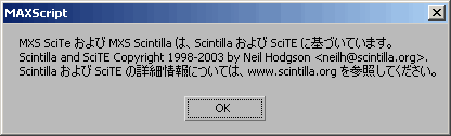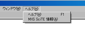 [MXS SciTE 情報] - この項目を選択すると、以下の情報ダイアログ ボックスが開きます。