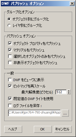 既定値は "C:¥Users¥<ユーザ名>¥AppData¥Local¥Autodesk¥3dsMax¥<最大バージョン> - 64bit¥JPN¥ja-JP¥plugcfg¥DWF_export.log"