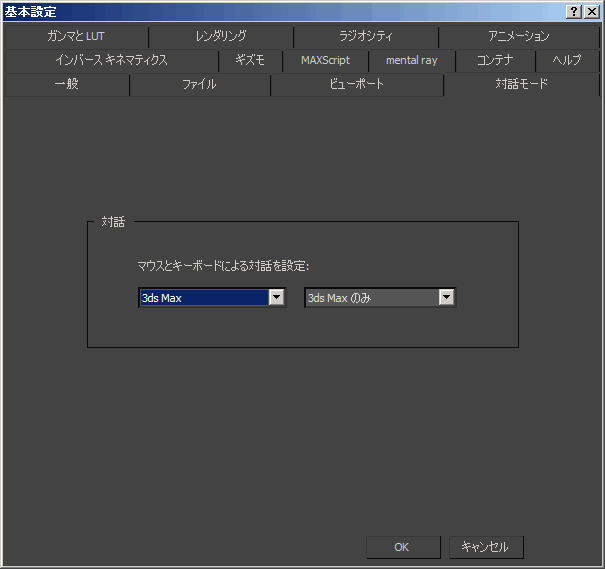 [基本設定](Preference Settings)ダイアログの[インタラクション モード](Interaction Mode)タブに対応します。