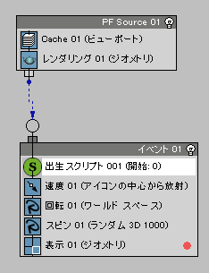 スクリプトによってフラグメントのあるパーティクルが作成されたら、それらは通常どおり パーティクル フロー のオペレータで制御できます。