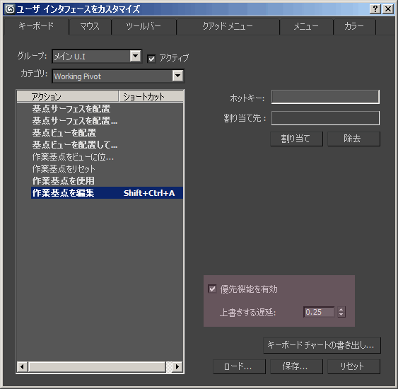 ActionItemOverrideManager コア インタフェースは、MAXScript にキーボード ショートカットの上書き機能を公開しています。