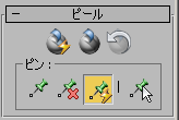 指定ノードの選択されたすべてのマップ頂点をピン止めします。これは、UV エディタの[ピール](Peel)ロールアウトの[選択をピン止め](Pin Selected)アイコンに該当します。
