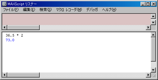 文字列のように数字そのものを入力するだけで、MAXScript はこれをエコーバックして数字として評価し、その値を表示します。