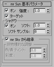 mr_Sun フォトメトリック ライトは、特に mr_Sun : Light および mr_Physical_Sky : textureMap 環境シェーダと組み合わせて使用することにより、物理学に基づいたサンライトを提供します。