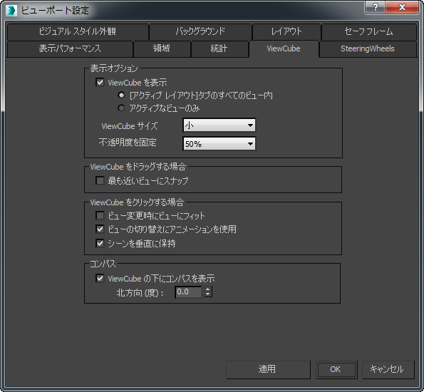 ViewCubeOps インタフェースは、MAXScript に ViewCube ビューポート ナビゲーション ツールの設定を公開します。