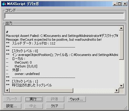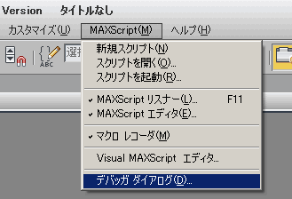 MAXScript に関するデバッガのダイアログは、次の手順で開きます。