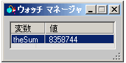 このチェックボタンを押すと、[観察マネージャ](Watch Manager)ダイアログ ボックスが開きます。 このダイアログ ボックスでは、関連するグローバル変数やローカル変数の値を監視できます。このボタンをオンにすると、[観察マネージャ](Watch Manager)ダイアログ ボックスが開いた状態になります。このボタンをオフにすると、[観察マネージャ](Watch Manager)ダイアログ ボックスが閉じます。