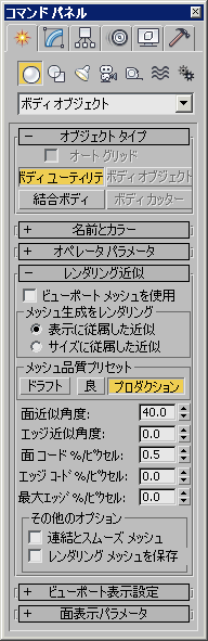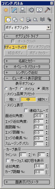 3ds Max 2011 で導入された Body_Utility クラスを使用すると、複数の Body_Objects のサーフェス表現パラメータを一度に微調整できます。