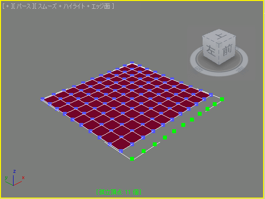 | 以下のコードでは、10x10 のセグメントを持つ平面を作成し、これを編集可能メッシュに集約した後、先頭の 20 個の面、つまり四辺形の 1 行全体を削除しています。これにより、外側に分離した頂点が残ります。
