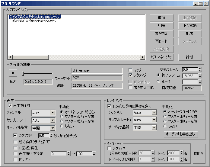 prosound.append"C:\\WINDOWS\\Media\\chimes.wav"--adds a file