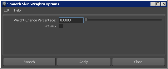 を選択し、スキン ウェイトのスムーズ(Smooth Skin Weights)オプションを開きます。