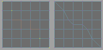 コンポーネントの接続(Connect Components)ツールを使用し、1 つの方向の複数の頂点とエッジを接続できます。これらのコンポーネントは隣接している必要があります。つまり、各頂点または各エッジが隣接するフェースに接している必要があるということです。