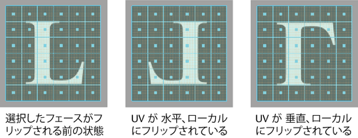 UV > 反転(UV > Flip)を選択したときの動作を設定するには、これらのオプションを使用します。