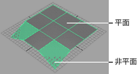 ポリゴン メッシュ上に可能なかぎり平面ポリゴン フェースを作成するようにするには非平面ポリゴン フェースは、最終的なイメージで、またはインタラクティブ ビデオ ゲーム コンソールに書き出したときに、正しくレンダーされない可能性があります。たとえば、非平面であるためレンダリング用に細分割されている場合には、ポリゴン メッシュに視覚的なシェーディング ラインや不要なスパイクが表示されることがあります。