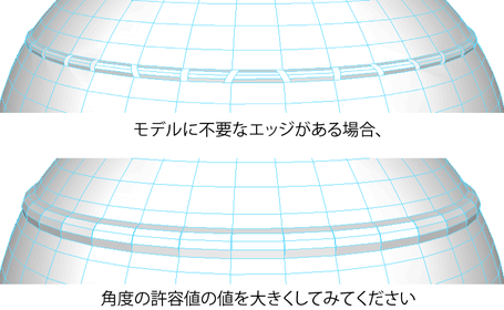 ベベルは、この角度を使用して、エッジを追加する必要があるかどうかを判断します。不要なエッジがモデルにある場合には、それらが除去されるようにこの値を大きくしてみてください。
