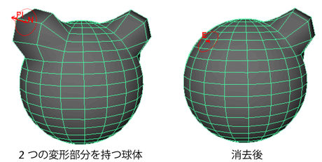 ポリゴンおよびサブディビジョン サーフェスの場合は、ジオメトリのスカルプト ツール(Sculpt Geometry Tool)でスカルプトすると頂点位置が変更されます。