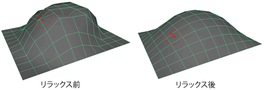 バンプの上をペイントして、最も突出したサーフェスの起伏をリラックスさせることができます。スムージングと異なり、リラックスはサーフェスの最も大きい異常のみを平均化することによって機能し、全体的な形状は保持されます。