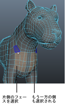Maya のシンメトリは選択ベースです。シンメトリがオンになっている場合、選択したコンポーネントとメッシュの反対側にあるコンポーネントが選択され、選択ベースでポリゴン モデリング操作をシンメトリに行うことができます。 現在のシンメトリ(Symmetry)設定は、ツールを切り替えても維持されます。
