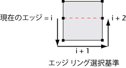 - 連続エッジの接続は、次のエッジが共有フェースの(i + 2)番目になるよう実行され、この接続は現在のエッジ(i)からの順序で決定されます。