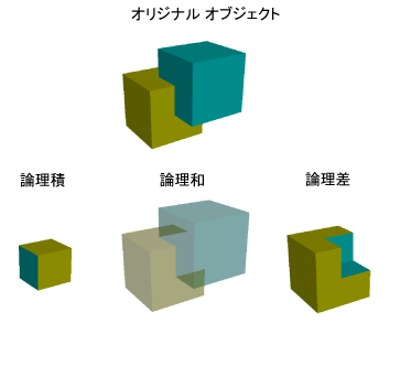 ブーリアン(メッシュ > ブーリアン)により、ポリゴン オブジェクトによりモデリングが行えます。3 種類あるブール演算でオブジェクトを統合することで、他の技法ではモデリングするのが非常に難しいシェイプを作成することができます。オブジェクトの加算、減算、論理積によって、新しい複雑なシェイプを作成できます。「ブーリアンを使用してポリゴン メッシュを統合する」を参照してください。