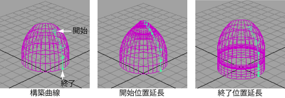開始(Start)を選択すると、始点からカーブが延長されます。